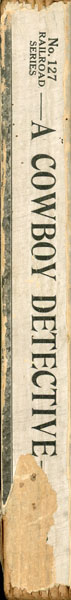First edition. 8vo. Pictorial wrappers, 246 pp., plus 12 pp. of advertisements. No. 127 Railroad Series. This work is the first half of A Cowboy Detective (See Six Guns 2026) and the second half was issued using the title "Further Adventures of A Cowboy Detective" Six Guns 2027 explains "When Ogilvie published 'A Cowboy Detective' (see item 2026), the publisher retained the title and issued the work in two volumes , this being the second. The two books were paper bound, being numbered 127 and 128 in the Railroad Series." Having worked for the Pinkerton Detective Agency from 1886 to 1907, Siringo decided to write a narrative of his experiences entitled Pinkerton's Cowboy Detective. Claiming that the narrative violated the confidentiality agreement that Siringo had undertaken while working for the agency, the Pinkerton Detective Agency successfully stopped publication of that work. Siringo then changed the title to A Cowboy Detective, deleted some of the text, changed the name of the agency in the book to Dickenson Detective Agency, and changed the names of many of the people in the book, such as "Tim Corn" for Tom Horn. Finally issued in 1912, this work was the subject of another lawsuit by the Pinkerton Detective Agency, suppressing its distribution and leading to 15 years of legal feuding between Siringo and the Pinkerton Detective Agency. Light wear to foot of spine, covers lightly used, nicks, closed tears, tiny chips and creases to the extremities else a good+ copy of a scarce item.