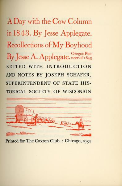 First edition. 12mo. Limited to 300 copies. Pictured. cloth, xvii [blank], 207 pp., "Introduction," notes and edited by Joseph Schafer, appendix, index, designed by Wm. A. Kittredge and printed by The Lakeside Press for the Caxton Club in an edition of 300 copies.