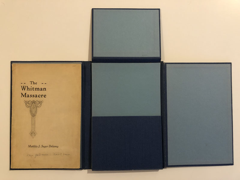 First Edition. Stiff Printed Wrappers. 46pp. Illustrated with a photographic portrait of the author and a drawing of the layout of the Whitman Mission. A unique and important historical record presenting the authors memories of the tragic events at Waillatpu, known as the Whitman Massacre. A few words written across bottom portion of front wrapper, and some light general soiling. Very good copy of this scarce account. This copy is from the Everett D. Graff Collection of Western Americana, "in a blue cloth case".