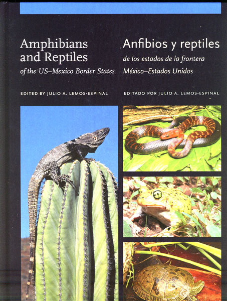 First edition. Thick 4to. Color, pictorial boards, x, 614 pp., acknowledgments, double column, illustrated, color plates, charts, graphs, appendix, references, index. “In the first bilingual work on the reptiles and amphibians of the US–Mexico border, top herpetologists come together to describe the herpetofauna of the states of this region, which includes more than 600 species of toads, frogs, salamanders, turtles, sea turtles, alligators, lizards, snakes, and sea snakes that are found along the almost 2,000-mile border between the two countries.” Each chapter is devoted to one state—four in the US and six in Mexico—with text in both English and Spanish. A full-color photo gallery includes images of nearly all species. As new, unread copy without dust jacket, as issued. A beautiful and informative book.