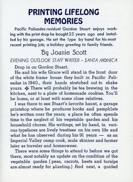Publication: Privately printed by Gordon Stuart, 1976, Pacific Palisades, California