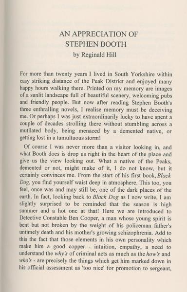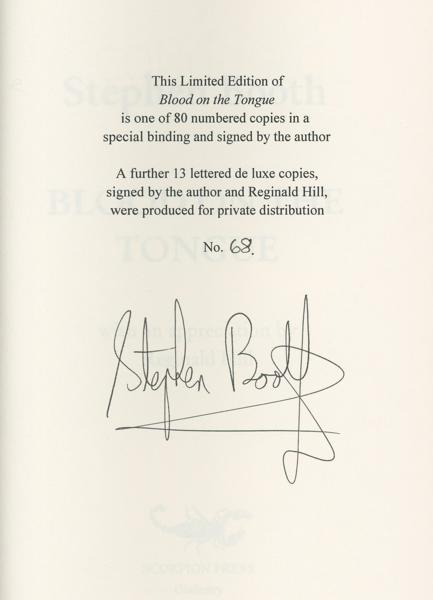 First edition. Limited edition of 80 numbered copies signed by the author. With an appreciation by Reginald Hill. Fine in quarter leather and marbled boards in transparent dust jacket. As if three bodies on her hands isn't enough, snow and ice have left half of "E" Division out of action and Diane Fry is forced to partner DC Gavin Murfin. Her former partner Ben Cooper is on a trail of his own, however - and one as cold as the Peak District January.