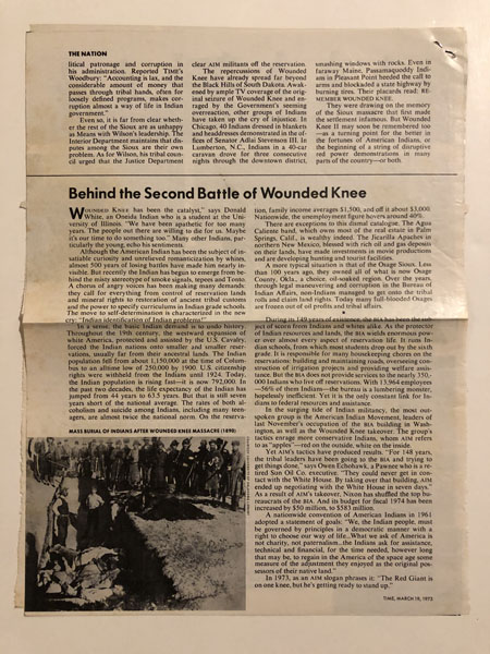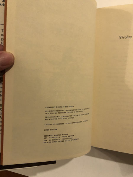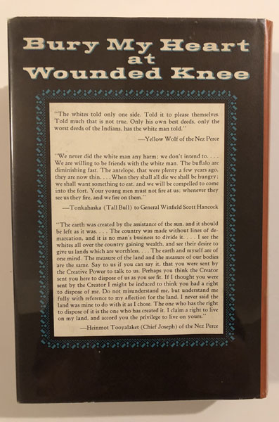 First Edition. Cloth. xvii, 487pp. Illustrated with 49 full-page photographs of various American Indians. Introduction. Notes. Bibliography. Index. "A successful best-seller and pro-Indian account of the plunder of the American Indian by battle, treaty, and disease during the second half of the nineteenth century. Based on speeches made by several prominent Indian chiefs...An interesting read, but with some biased history. In a book review in a Chicago Westerners publication, historian Don Russell referred to this work as "propaganda." [This book] "is a documented account of the systematic plunder of the American Indians during the second half of the nineteenth century, battle by battle, massacre by massacre, broken treaty by broken treaty...with the words of the Indians themselves, culled from testimonies and transcripts and previously unpublished writings...presents a unique and disturbing history of the American West from the Indian point of view."--Dust Jacket Description. This work has become a modern classic of western American history. An exceptionally clean, tight, fine copy in the first state of the dust jacket, which has 4 quarter-inch closed tears to bottom edge of the spine of the dust jacket and a short, mark on lower fore-edge of front panel, else a fine, bright copy. Also, laid-in is a three-page article in Time Magazine, March 19, 1973 reporting the confrontation at Wounded Knee, South Dakota between militant Indians associated with the American Indian Movement (AIM) and local, state, and federal law-enforcement..."the Second Battle of Wounded Knee".