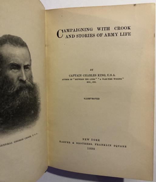 First edition thus. Originally published in 1880 as The Fifth Cavalry in the Sioux War. Republished in 1890 with some changes as Campaigning With Crook. 12mo. Dark blue pictorial cloth, title stamped in gold on front cover and spine, v [5], 295 pp. [blank] plus eight pages of advertising, preface, frontispiece (portrait), illustrated. Exciting, vividly told story of The Big Horn and Yellowstone Expedition in 1876, against the Sioux and Cheyenne. Graff 2326 says, "According to ARMY AND NAVY JOURNAL, October 11, 1890, p. 107, this issue was called in by the publishers at the demand of Reuben D. Davenport....who claimed certain statements in Chapter 25 (15, actually) were libelous. The volume was re-issued in 1891 under an 1890 date line and a retraction was published." Small bookplate of previous owner in top corner of front pastedown. Light wear to spine ends, else very good-near fine copy.