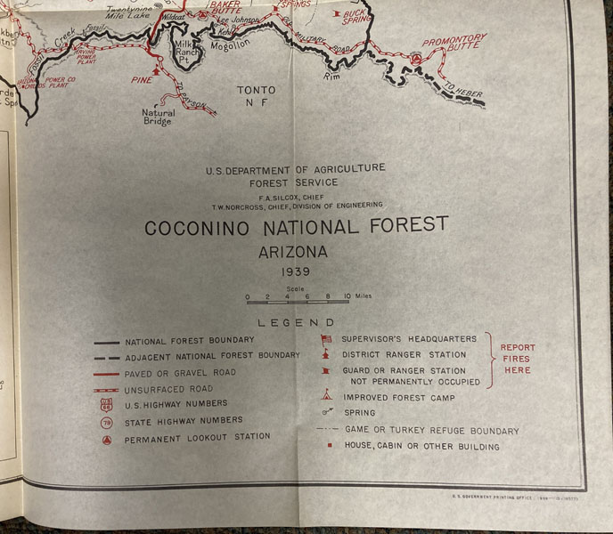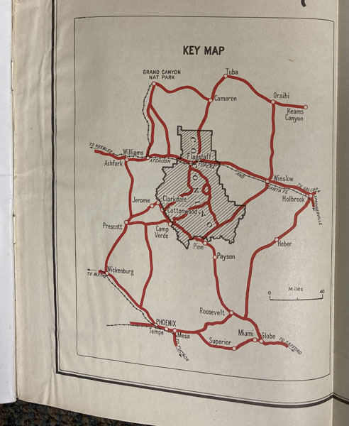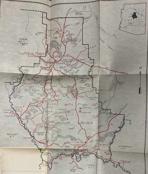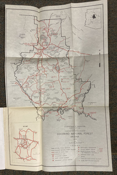 First edition. 8vo. Pictorial wrappers, vi, 26 pp., foreword, illustrated mostly from photographs, with a fine map of the Coconino National Forest with details including roads and points of interest is affixed on the inside of the rear cover. The park is composed of 1,730,420 acres and is 60 miles across at its widest point and 90 miles at its longest point. It is located just north of the geographical center of Arizona. Covers lightly soiled else a very good tight copy of a scarce item.