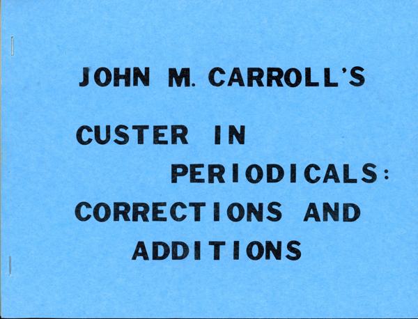 First edition. An autographed edition of 500 copies signed by the author and by the Jeff Dykes who wrote the introduction.Two-tone cloth, decoration on the front cover and titles on the spine are in gold gilt, light blue endpapers, [10], 134 pp., double column, acknowledgments, introduction, appendices. Fine copy housed in a cloth slipcase. Together with JOHN M. CARROLL'S CUSTER IN PERIODICALS: CORRECTIONS AND ADDITIONS (SIX VOLUMES). Each of these volumes is privately printed by the author, bound in printed wrappers and stapled. They were published beginning in 1978 through 1982 inclusive. Each is bound in a different color and are in fine, unused condition. They are housed in a cloth slipcase with titles stamped in gold gilt on a red leather label and affixed to the spine.