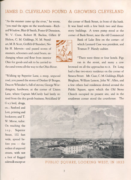 First edition. 19" x 9" in tan pictorial wrappers. iii-x, 76pp. Illustrations. Foreword. Map. Index. Information on the beginning and development of Cleveland area. Discusses the canal era, the beginning and growth of businesses and the city due to production of coal, iron, steel, rubber, oil, ships at Cuyahoga, railroads, oil refining, etc. Cleveland continues to progress and grow with population increasing dramatically. By 1937 Cleveland leads the country in the manufacture of chemicals, astronomical instruments, nuts and bolts, vacuum cleaners, and other hardware. It possesses the largest sandstone quarries in the world. Cleveland is the chief shipbuilding center on the Great Lakes and is the birthplace of the American automobile. Information on improvements and technology in Cleveland is followed by information and history of the Case School of Applied Science and what is now need by the school in order to develop it into an even greater institution of applied science. Numerous black and white photographs throughout. Some pages with light soiling. Wrappers lightly soiled and with wear to the extremities. Very good. Scarce.