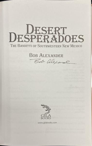 First edition. 8vo. Signed by the author on the title page. Limited edition of 500 copies. Cloth, orange stamping on front cover and spine, 334 pp., introduction, preface and acknowledgments, illustrated, plates, portraits, maps, endnotes, bibliography, index. Introduction by David Johnson. Tells of the early-day outlaws and gunmen of Southwestern New Mexico. Some of the characters presented whom the author considers operated "outside the law" were: John Kinney, Bronco Bill Walters, Kit Joy, Six-Shooter Smith, Three-Fingered Jack Dunlap, Pony Diehl, Tom Bowe, James Brooks, George W. Musgrave, Robert "Dutch" Martin, Kid Johnson, T. C. Hillard, Sherman McMasters, Hair-Trigger Johnnie, Billy the Kid, "Old Man" Clanton, John Ringo, Wyatt Earp, Doc Holliday, Curly Bill Brocius, Black Jack Christian, and Black Jack Ketchum. Uncovers much new information on many of desperadoes that are discussed. In addition are more than 80 rare historical photographs, many of them never before published. As new, in dust jacket.