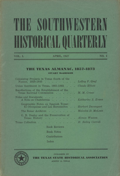 Publication: The Southwestern Historical Quarterly, 1946 & 1947, Austin, 1946, 1947