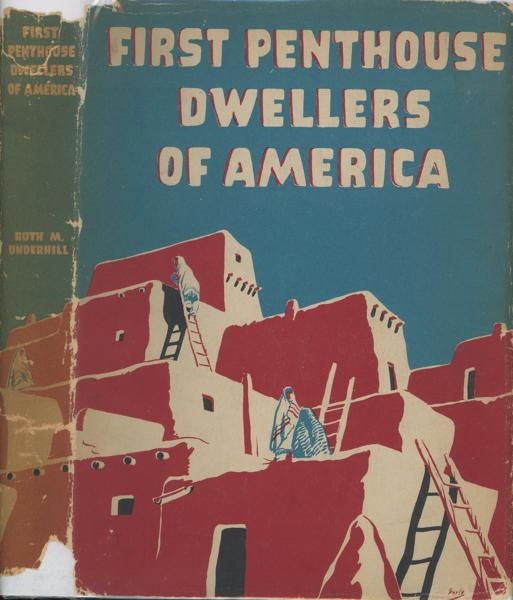 First edition. 8vo. Cloth, titles and design stamped in white on front cover and spine, maps on front and rear endpapers, xii, 155 pp., frontispiece, foreword, illustrated from photographs, of various Pueblo Indians and their lands, bibliography. Interesting general history of the Pueblo Indians of Arizona and New Mexico. Information on customs, historical developments, dramatic episodes and unique philosophies of life. Attractive first edition with interesting markings from unidentified early owner, who faintly inks or pencils brief phrases at the bottom of about a dozen pages, for instance at foot of title page drawing arrow to the Native American woman in frontispiece photograph and noting, "This is our friend Elsie from Shipauloir [?] / She is Alice's half sister" and alongside another closeup of a woman's hands weaving a basket notes "This is Elsie," another photo shows a Native American woman holding a large pot on her head, and the inked note states "My black bowl;" usually these notes simply identify a place when the photo's caption is cryptic, but all reflect intimate familiarity with the area and its people. Tiny bump to foot of spine and light wear to corners, else a very good clean copy in dust jacket with small chips to the spine ends, light wear to the corners and minor nicks, chips and wear to the extremities and spine panel.