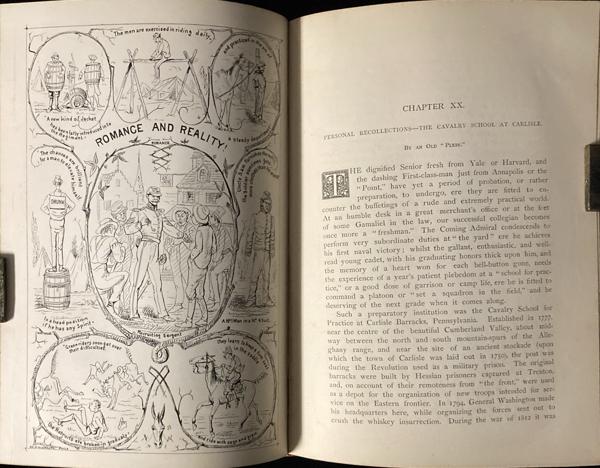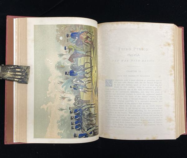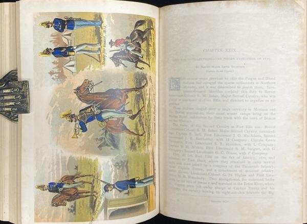 First edition. Thick 8vo. Red cloth with insignia in gilt on front cover and in blind stamp on back cover, title in gilt on spine, brown front and rear endpapers, [1]-[14, 14 blank], [17]-561, [562 blank], [563-566 advertisements] pp., frontispiece, preface, portraits, illustrated with chromo-lithographs, wood engravings, and pen-and ink, maps, appendix, index.