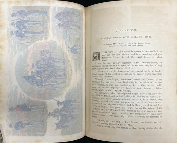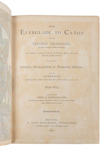 The book is divided into six sections, The Florida War 1836-1842, Louisiana-Texas 1843-1844, The War With Mexico 1845-1848, California, Texas, New Mexico, Kansas, Utah 1848-1860, War of "The Rebellion" 1861-1866, and Colorado, Nebraska, Wyoming, Montana 1866-1875. The Second Cavalry saw action in the Seminole War, the Mexican War, on the plains in Texas, New Mexico, etc. on the way to California, during the Utah Expedition, the Civil War, Indian battles in Colorado, Nebraska, Wyoming, and Montana, The Kidder Affair, Custer in the Civil War section, the Fetterman Massacre, the Noyes Expedition, the Piegan Expedition, Yellowstone Expeditions, and much more. The frontispiece contains the eight portraits of officers of the Second Dragoons. A comprehensive appendix contains battles of the regiment, military records of officers, roll of honor, and orders, reports of operations, and correspondence. This book is from the renowned personal collection of Dr. George D. Lacy.