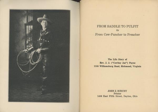 First edition. 7 1/2" x 5 1/4" green printed stapled wrappers, 56 pp., frontispiece (photograph of J. J. Payne), introduction. Stated in the Introduction : "I spent twelve years of my life as a Texas cowboy, four years as a Texas Ranger, seventeen months was spent with Buffalo Bill's Wild West Shows, and seven months was spent with Miller Brothers 101 Ranch." Payne was born in Texas in 1868 and started working for pay at the age of 12 and became a cowboy at the age of 16. Although Ramon Adams # 1768 lists this item as "scarce" this is the first copy we have located in more than 65 years. Light wear to covers else a tight and clean copy housed in a clamshell case with titles stamped in gilt on the spine.