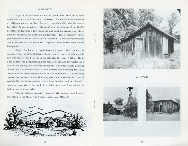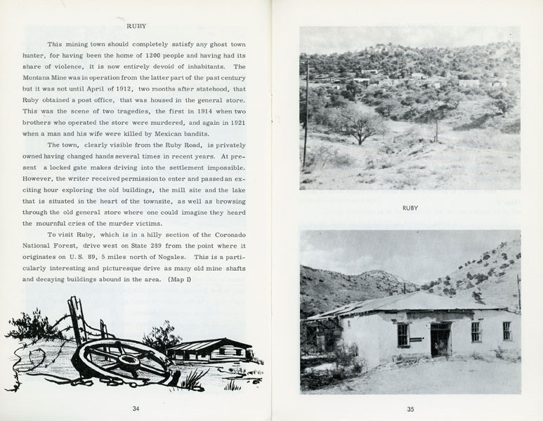 First edition. Fifth printing. 9" x 5 7/8" in pictorial wrappers. 56 pp. Foreword. Illustrations. Maps. Index. Overview of what a ghost town is followed by information on and photos of various ghost towns located in Southeastern Arizona to include Charleston, Millville, Contention City, Courtland, Harshaw, Helvetia, Hilltop, Mowry, Pearce, Richmond, Sunnyside, Watervale, Dos Cabezas, Middlemarch, Black Diamond, Ruby, Johnson, etc. Seven pages of strip maps to various ghost towns. Very light soiling and wear to the extremities. Very good.