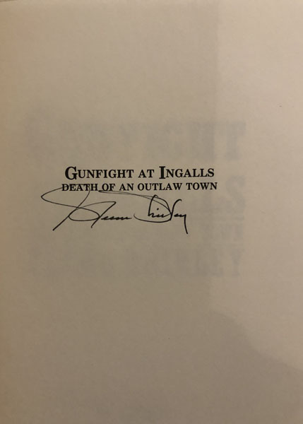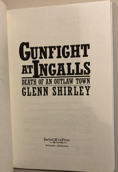 First Edition. Brown Cloth. x, 180pp. Numerous Illustrations. Diagrams. Maps. Ingalls Street Map on Endpapers. Preface. Extensive Bibliography. Index. An outstanding history of this famous gunfight. On September 1, 1893, three covered wagons carrying 24 lawmen rolled into Ingalls, Oklahoma Territory; a town frequented by Bill Doolin and his gang. The timing was right, in that Doolin, Bill Dalton, "Dynamite Dick" Clifton, "Arkansas Tom" Daugherty, "Bitter Creek" Newcomb, and "Tulsa Jack" Blake were all in-town, at the saloon. The early morning arrival of multiple covered wagons roused suspicion. The officers were discovered before they could all get into position. "Bitter Creek" opened up the gunfire, and so began the deadly battle. Although two of the outlaws were wounded, they escaped; but the battle resulted in the death of 3 lawmen and 2 innocent bystanders, and the wounding of 2 other citizens. As New in dust jacket. Signed by Glenn Shirley on half-title.