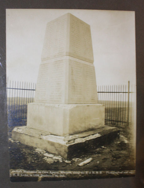 6 1/2" x 8 5/8" photograph mounted on a 10" x 12" photo picture board. A photograph of Custer's Monument located near Crow Agency, Montana along the Burlington & Missouri River Valley Railroad (B. & M. R. R.). Photographed and copyrighted by H. R. Locke, in 1894, Deadwood, South Dakota. It serves as a memorial to those who fought in the battle of Little Big Horn in 1876. Henry Robinson Locke (1867 - 1927) was an American photographer in the 19th and 20th century who photographed the Wild West. He ran a studio in Deadwood, South Dakota. He photographed the Black Hills area, Deadwood, Crow Indians, farmers, miners, railroads, but also Calamity Jane (1885) and the Little Big Horn battlefield (1894). The picture board has light wear to the corners and extremities else a very good presentation.