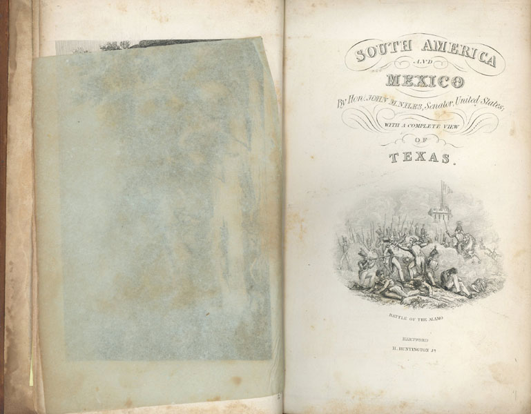 First edition. Second printing with the added Texas material. Two volumes in one. Thick 8vo. Original full tree calf with the titles stamped in gilt on the spine, 370 pp., plus 230 pp., all edges marbled, frontispiece, illustrated, maps. Streeter, Bibliography of Texas 1285: “This is an excellent contemporary account of the Texas Revolution and its beginnings, written by Loraine Thompson Pease of Enfield, Connecticut, father of Elisha M. Pease….This account includes reprintings of the Declaration of Independence, Burleson’s report on the taking of Bexar in December, 1835, the Travis letter of February 24, 1836, and several other reports and documents. One of these is a reprinting (p. 329-335), which I do not recollect having seen elsewhere, of the report of Benjamin H. Holland, Captain of the 2nd Company of Artillery, on the Fannin Massacre….I am inclined to think the value of this contemporary account of the Texas Revolution, compiled by the father of one of the participants…has been overlooked.” Raines, Bibliography of Texas p. 163: “A well written and reliable volume; now scarce.” Extremely scarce, especially with the fine Texas map. Spine rebacked with a portion of the original spine laid down, lightly foxed throughout, with some light professional restoration to the maps by a master paper conservator. Overall a good+ item, extremely scarce, especially with the fine Texas map.