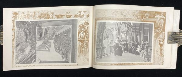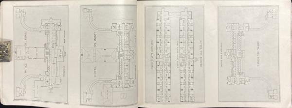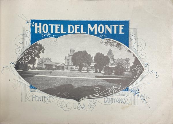 10 1/4" x 7" oblong color pictorial wrappers. 72 pages, illustrations, map, floor plans, temperature chart, testimonials, rates. The Hotel Del Monte was a large resort hotel from its opening in 1880 until 1942. It was considered to be one of the finest luxury hotels in North America. Charles Crocker, one of the California's Big Four railroad barons, established the resort through Southern Pacific Railroad's property division, Pacific Improvement Company. Hotel Del Monte was was the first true resort complex in the United States. The property extended south and southeast of the hotel and included gardens, parkland, polo grounds, a race track, and a golf course. Originally used for hunting and other outdoor activities, the hotel's property eventually became Pebble Beach. The famous 17-Mile Drive was originally designed as a local excursion for visitors to the Del Monte to take in the historic sights of Monterey and Pacific Grove and the scenery of what would become Pebble Beach. Thoroughly discusses the hotel and the area around it, offering information as to what visitors can expect while staying at the hotel. 5 pages of floor plans of the hotel and its grounds. 49 pages of photographs of the hotel, its grounds, and the area. Light soiling to covers as well as a crease to the front cover and light chipping to spine, else very good. Wonderful photographs and descriptions of the hotel.