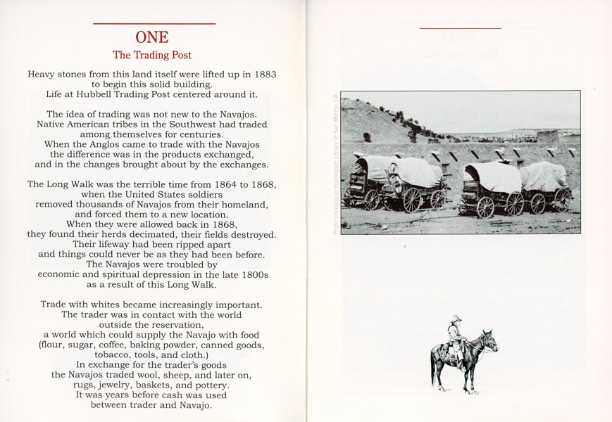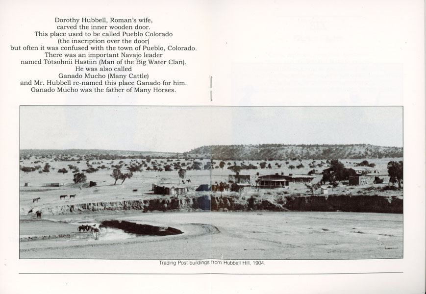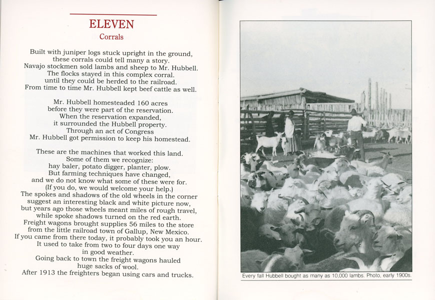 6 1/4" x 4 1/2" in gray-green pictorial wrappers. [32] pp. Illustrations. Map. A guide to the Hubbell Trading Post with 13 stops noted. Photographs and information on the Hubbell family, Hubbell Hill, the Hubbell home, the guest hogan, the kitchen garden, the bread oven, the homestead, the farm, the bunk house, the corrals and the barn. Light soiling to wrappers along with light scraping and wear. Very good.