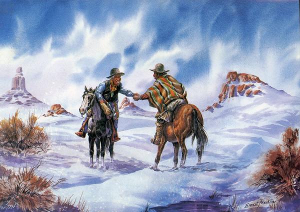 First edition. Signed on the title page by Tony Hillerman. Plus an original full-color drawing by artist Ernest Franklin on the half title page and signed by him. Fine in fine dust jacket. Slipcase. Navajo Tribal Police officers, Sgt. Jim Chee and Lt. Joe Leaphorn. Three men stage a raid on the Ute tribe's gambling casino. They kill a policeman, wound another, and disappear into the mountains. The FBI is called in and determines that the wounded deputy sheriff is their suspect. Chee and Leaphorn investigate and see a pattern connecting this crime with those of the Ute hero-bandit from days gone by. Laid-in loosely is a greeting card signed by both Ernie Franklin and book publisher Ernie Bulow. Bulow was a prominent promoter of Franklin's work and especially the drawings in Hillerman's tribal mysteries.