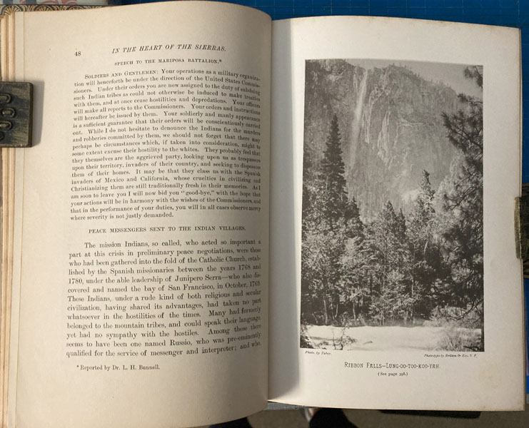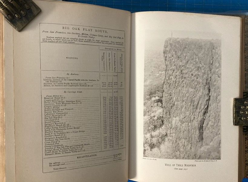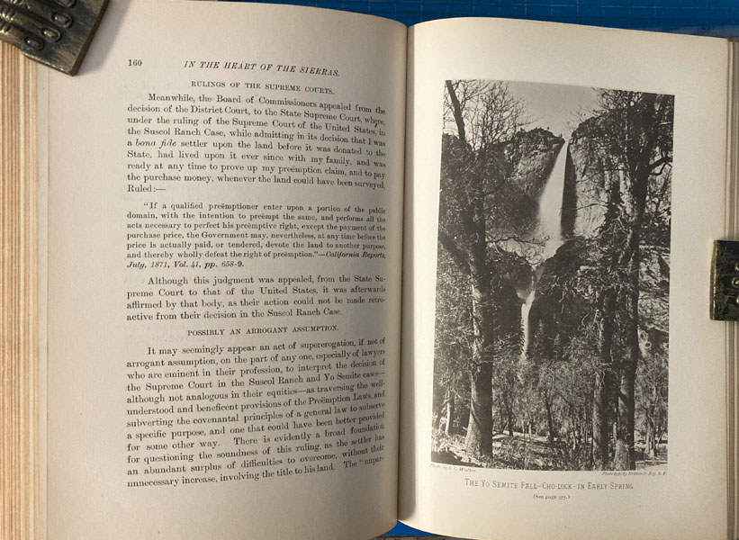 First edition. 8vo. First printing in publisher's deluxe full-morocco binding, with marbled endpapers, gilt inner dentelles, all edges gilt, xii, 13 - 496 pp., frontispiece, preface, numerous illustrations, plates, maps. Currey and Kruska comment that this book "covers, more fully than other works of the period, every aspect of Yosemite Valley and the Big Trees that could be considered of general interest to visitors. This work is an important primary source for information on the early human history of the region"... Covers lightly rubbed and with light wear to the corners and extremities, else a tight clean copy in very good condition.