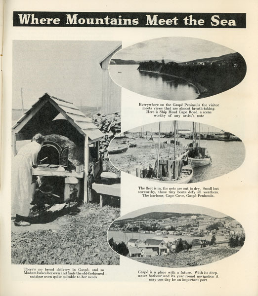 9 1/8" x 8" in bright, colorful pictorial wrappers. [20]pp. including wrappers. Black and white illustrations. Overview of the province of Quebec with brief information on Montreal, the Laurentian Mountains, Quebec City, Southern Quebec, Lower St. Lawrence and Temiscouata, the Gaspe Peninsula, Temiscamingue and Abitibi. This is followed by 14 pages of photographs showing scenes of various places within the province of Quebec. Minor soiling and with light wear to the extremities. Very good.