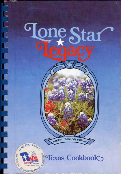 First edition. Fifth printing. 9 1/4'' x 6 3/4" in pictorial boards. Spiral bound. 364 [4] pp. Foreword. Contents. Index. A community cookbook released as part of the celebration of the Texas Sesquicentennial and contains a large collection of recipes meant to showcase traditional Texas foods and regional cooking. The book includes hundreds of recipes reflecting Texas culture, such as barbecue, Tex-Mex dishes, casseroles, desserts, and regional specialties. It also features photographs and cooking tips that highlight the flavors and traditions of Texas kitchens. Neatly written on inside front board by previous owner stating that this cookbook was bought in San Antonio on her 7th wedding anniversary. Occasional hand-written notes at edges of recipes. Rubbing to board edges and with light soiling.