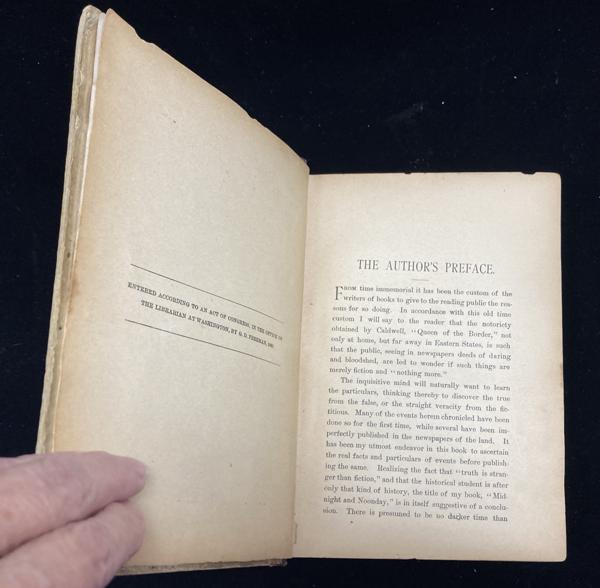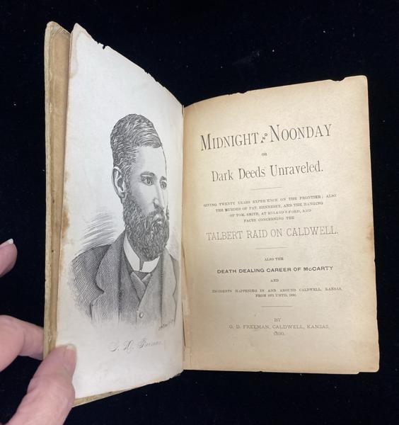 First edition. First printing with the word "Talbert" misprinted in the title. 8vo. Original quarter cloth and boards, [1-405 pp., 20.2 x 14.5 cm. frontispiece. three illustrations, "Author's Preface," index to chapters. "Talbert" mis-spelled in the title. Six Score 39 says "An extremely rare history of Caldwell during this vital period, when it was an important cattle town, and a first hand account of one of the roughest of the shipping terminals." Herd 843 says "Exceedingly rare." Streeter Sale 2030 says ".... rare ... this important account of the Kansas frontier. The work is usually known by the second edition of 1892." Adams One Fifty 56 says "The book contains much material on the gunmen and their gun battles in Cadlwell [sic] and tells of the Medicine Lodge bank robbery by Henry Brown and Ben Wheeler. I was fortunate enough in my early 1940s to pick up a copy of the first edition in California, and it is the only one I have ever seen." Very good, tight copy of the first issue of the first edition, with contents in very nice condition. Housed in a two-tone quarter leather and cloth clamshell case with raised bands and titles stamped in gold gilt on the spine.
