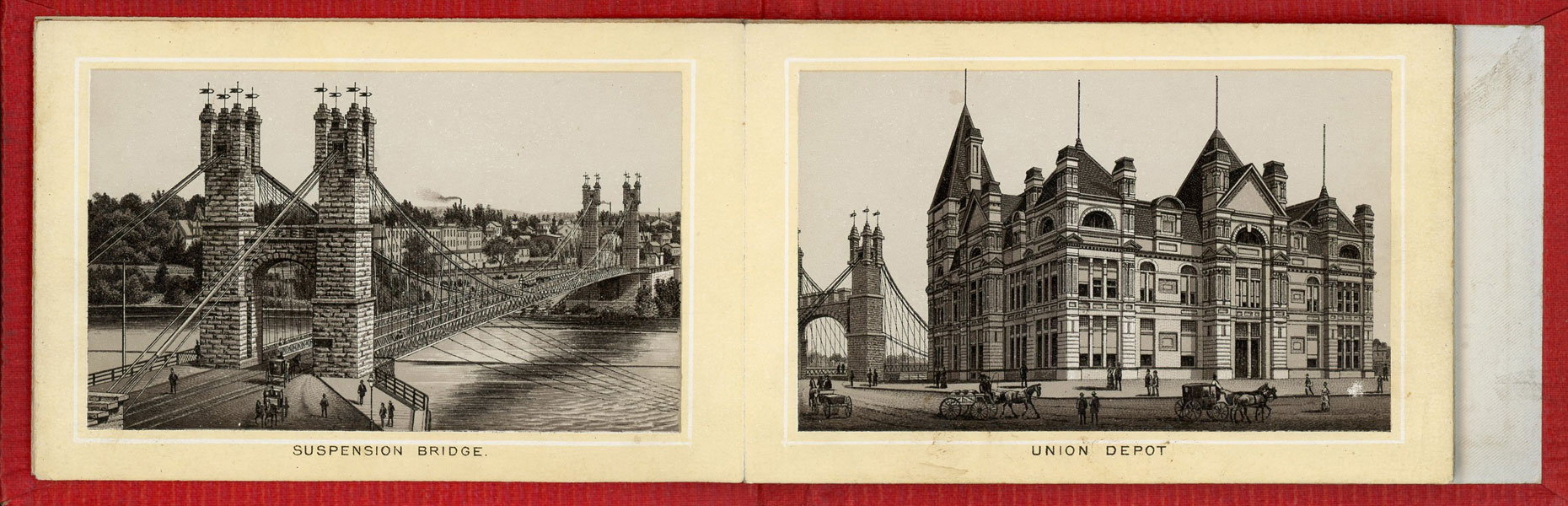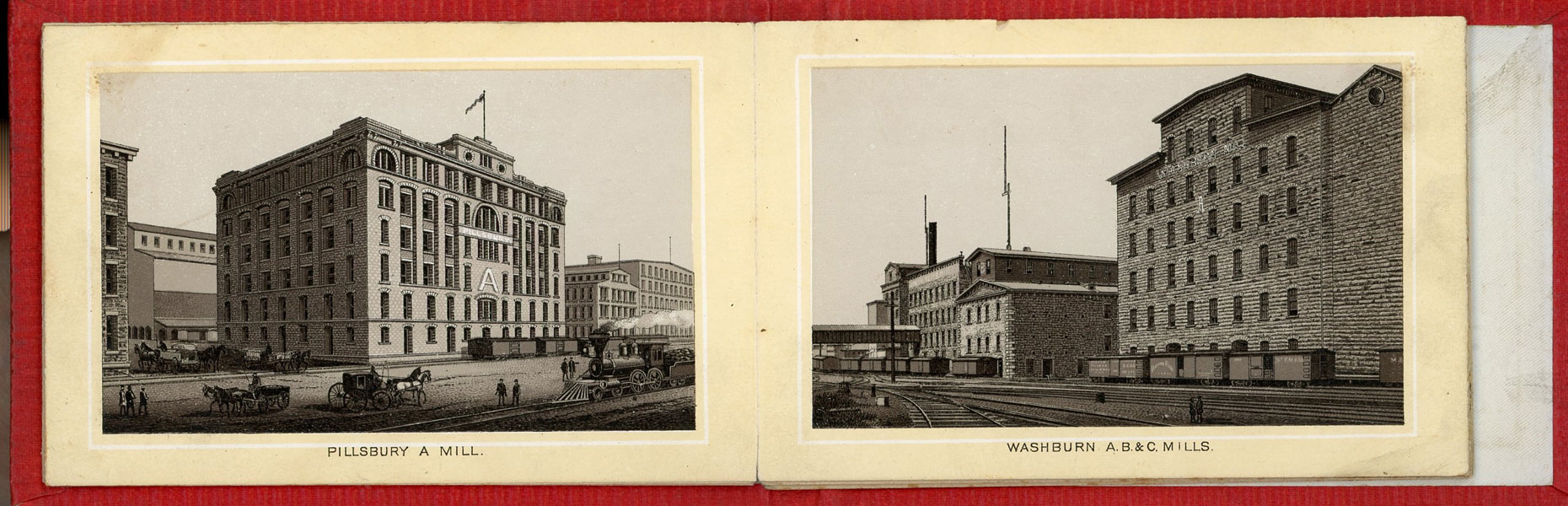 First Edition. 18 panels of albertype views including a double one at beginning showing Minneapolis, as seen from East Minneapolis. Accordion-fold format housed in 3 1/4" x 5" red cloth boards with title in gilt. Additional views include Suspension Bridge; Union Depot; Viaduct and 10th Ave. Bridge; Saw Mill, near St. Anthony Falls; Washburn A.B.&C. Mills; Tribune Building; West Hotel; Merchants' Block; Hennepin Block; Sidle Block; Central Baptist Church; The Lyndale, Lake Calhoun; etc. Split to top edge of first photograph, not affecting picture along with light soiling to covers and light soiling to one picture. Very good.