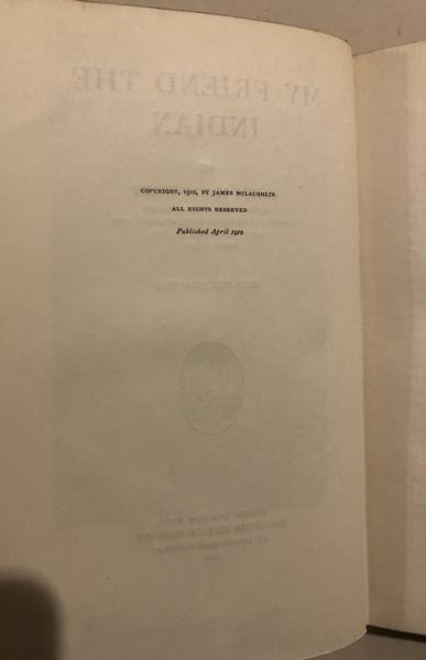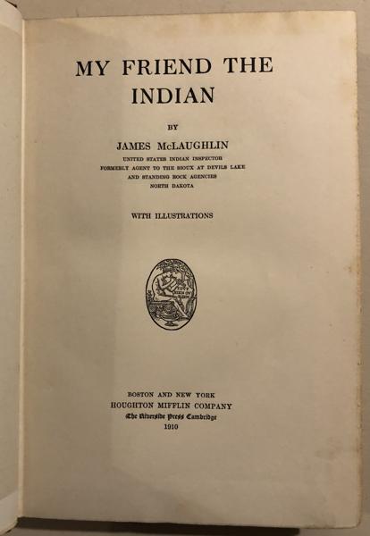 First Edition. First Impression. Cloth, 417pp., 16 plates. An important account of the authors' 52 years of residence at various western Indian reservations. McLaughlin was Indian agent at the Standing Rock Sioux Reservation at the time of Sitting Bull's death. He had never been on good terms with Sitting Bull, who McLaughlin felt had negative influence over his fellow Sioux and so supported Gall as a leader of the Sioux in order to reduce Sitting Bull's power. In this work, he covers the Battle of the Little Big Horn based on what he learned from Chief Gall and other Hunkpapa participants, especially the very intelligent Mrs. Spotted Horn Bull."--O'Keefe 1518. Fearing Sitting Bull's increasing support of the Ghost Dance Craze and the rapid increase in the Sioux Indians adoption of the Ghost Dance, McLaughlin ordered the arrest of Sitting Bull by Indian Police in December, 1890. The effort resulted in the killing of Sitting Bull, 7 of his supporters and 6 of the Indian Police. Tal Luther, Custer High Spots--"...a classic in its own right". This first edition has become quite scarce. Some very light rubbing and some very slight edge wear. A clean, bright, tight copy of this classic account of the Indian wars and reservation life. Near fine.