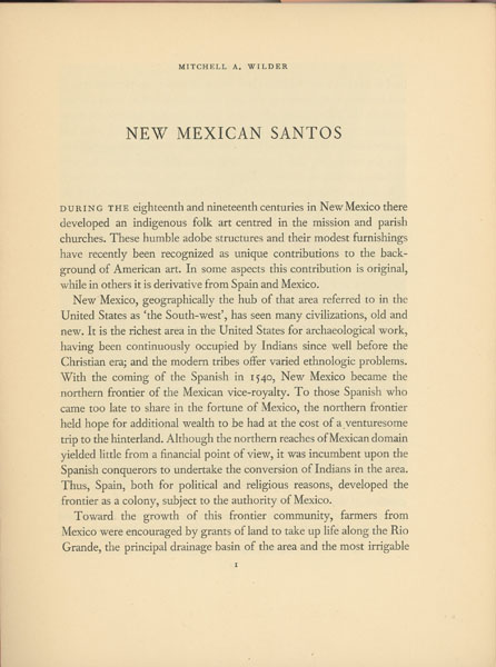 First edition thus. 8vo. Red printed wrappers, titles printed in black on the front cover, 11 [1] pp., illustrated from photographs. A brief history of Santos in New Mexico. Fine copy.