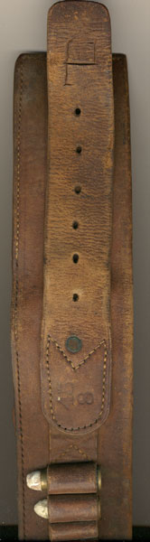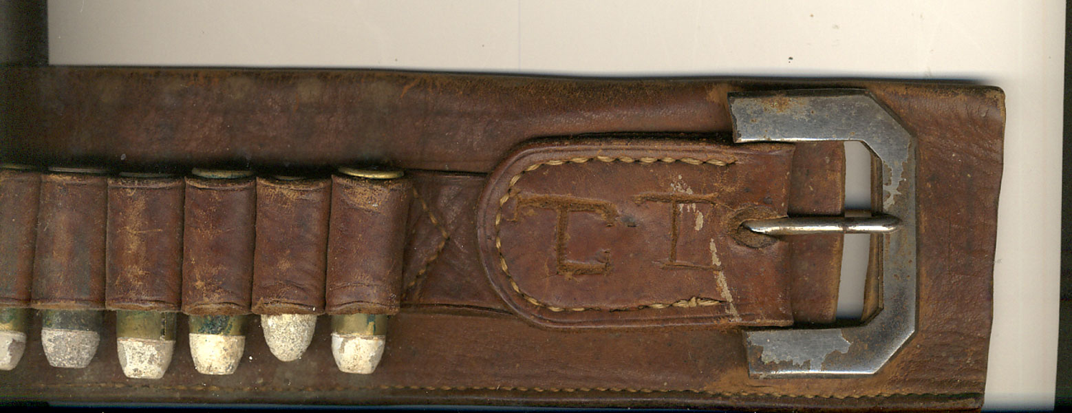 According to a facsimile typed letter dated August 21, 1920, that was signed by Historian and Author E. A. Brininstool, "this old belt, knife, knife scabbard and pistol holster were carried by a notorious horsethief who was shot and killed in South Dakota by Capt. George Bartlett, U.S. Deputy Marshal, in the early '80's. They were presented to me by Capt. Bartlett, and in turn are herewith presented to my good old pard, L. H. Spragle, to hang in his den as a memento of wild days on the frontier of Dakota. It will be observed that one shell is nicked on the head. Bartlett's bullet struck the shell, glanced off and went through the thief's body. The shells in this belt have never been taken out since the man was shot. E. A. Brininstool." In a second facsimile typed letter from Brininstool dated March, 21, 1921, the first paragraph says "Yep, you're right. You got that belt, holster and knife and scabbard. I did have the saddle, but had no place for it and sold it some years ago. I helped bury Bartlett here when he died some ten years ago or so, and my Indian stuff is the dope he had. Better hang on to this story and you have the goods to show along with it." L. H. Spragle and E. A. Brininstool first met in Reno in 1910 or so when they each were in the process of divorcing their wives. While the process was running its course they roomed together in a tent city and apparently had quite a time together. Spragle returned to Pennsylvania and he and Brininstool carried on a life-long friendship and correspondence. We find in an article by Jeff Gill some comments about Capt. George Bartlett, "... a fascinating character named George E. Bartlett, a U.S. Marshall for Pine Ridge and a city west of there already infamous as Deadwood, South Dakota. Bartlett also ran a small trading post of his own on a creek through part of the Pine Ridge Reservation. Also included here is an original photograph of U.S. Deputy Marshal George Bartlett, circa 1891. It is a Boudoir Cabinet Card, issued by Northwestern Photographic Co., Chadron, Nebraska. Image: 7"x4.375". Mount: 8"x5". Bartlett stands at the left edge of the photograph in long winter coat, boots, and hat. Photograph includes 3 well-known hostile Brule Sioux chiefs; Two Strikes, Crow Dog, and High Hawk, identified as "Leaders of the Hostile Indians at Pine Ridge Agcy. S. D. During the Late Sioux War." All 3 were vocal advocates of the Ghost Dance movement, which incited hostility and threats to the army and other whites. Additionally, copies of photographs of Bartlett, held in the Amon Carter Museum of American Art, and originating in the Earl Alonzo Brininstool Collection, are included. On the back of one Cabinet Card photograph is a hand-written notation by Brininstool: "Capt. Geo. E. Bartlett, a prominent figure in the Ghost Dance War near Pine Ridge reservation. Interpreter and scout. Known to the Sioux as "Wounded Knee" because he walked with a slight limp occasioned by a wound he received in a fight with a bunch of horse thieves while acting as U.S. Marshal at Pine Ridge reservation. E. A. Brininstool. Handwritten along the bottom edge: "I have his complete outfit shown here-E.A.B. Died in Los Angeles 1910." All of which supports Brininstool's letters to Spragle Identifying the origin of outfit that we are offering.
