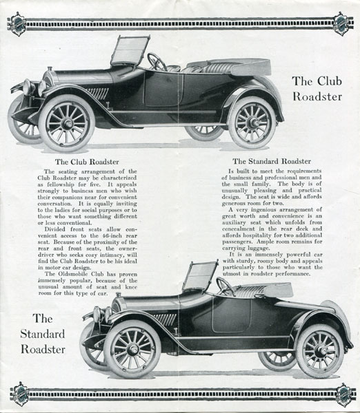 First edition. 18" x 16" sheet, printed both sides, folds to 9" x 4," duo-tone pictorial wrappers, 16 panels, illustrated. One side promotes the advantages of the Oldsmobile Model 45-A, eight cylinder touring car is a refinement of the Model 45 which has served thousands of satisfied customers. The car has "Beauty and power combined with comfort, performance, endurance and economy." The other side devotes four panels to showing the merits of the Oldsmobile Model 45-A eight cylinder touring car; two panels to picture and discuss the Oldsmobile Club Roadster and the Standard Roadster; one panel for specifications and the title page. Oldsmobile was a brand of American automobiles produced for most of its existence by General Motors. Olds Motor Vehicle Co. was founded by Ransom E. Olds in 1897. In its 107-year history, it produced 35.2 million cars, including at least 14 million built at its Lansing, Michigan factory. When it was phased out in 2004, Oldsmobile was the oldest surviving American automobile marque, and one of the oldest in the world, after Daimler, Peugeot and Tatra. Fine, bright copy.