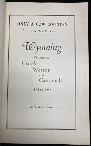 The narrative begins with the establishment of Crook County in 1875, capturing the earliest ranching and cattle operations. Broad expanses of open range dominated the land, with cowboys, cattle drives, and rugged frontier conditions defining daily life. The arrival and expansion of the Burlington Railroad through the region had a major impact, spurring the development of communities. His accounts underscore how rail connectivity enabled economic change by linking ranchers to distant markets and encouraging population growth. In addition to ranching and cattle information there is much to say about early pioneers, the Black Hills, oil, Big Nose George and his gang, Wounded Knee, Indians and their three-day sun dance, and much more. In addition to ranching and cattle information there is much to say about early pioneers, the Black Hills, oil, Big Nose George and his gang, Wounded Knee, Indians and their three-day sun dance, and much more. A near fine copy of a scarce item.