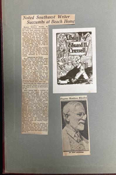 Sacramento bookseller Crussell was a great admirer of Rhodes and had these three complete first appearances - 'Over, Under, Around or Through;' 'Paso Por Aqui;' & 'The Proud Sheriff' - custom bound and sent to Rhodes for his signature.