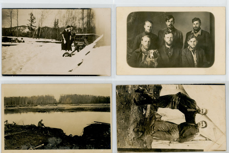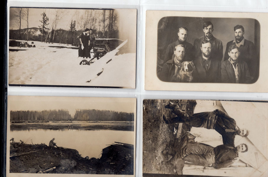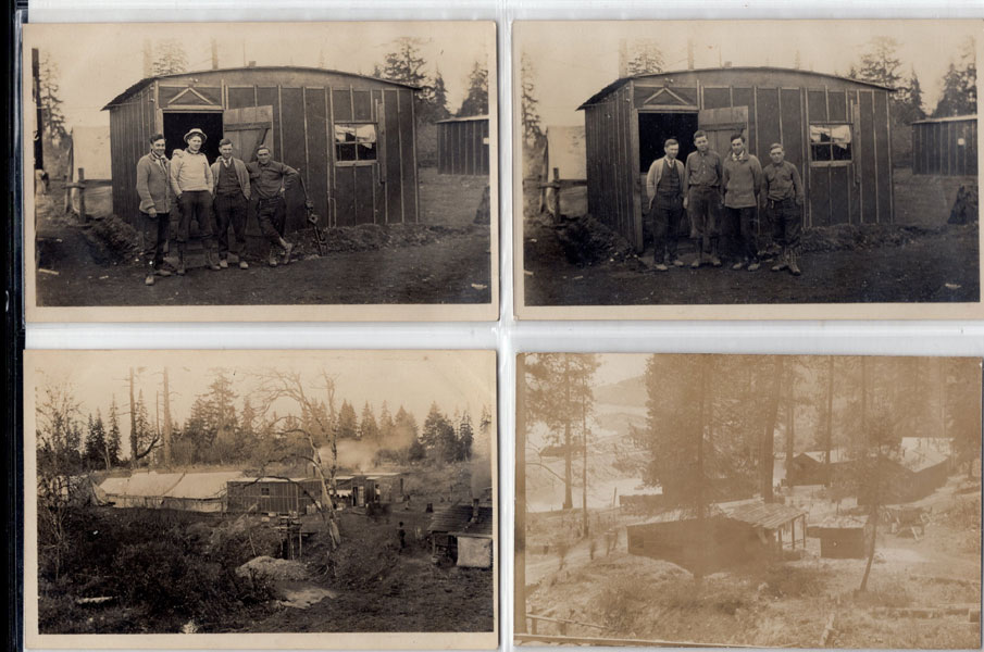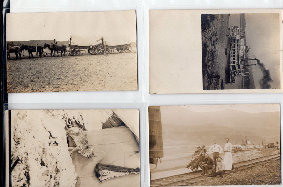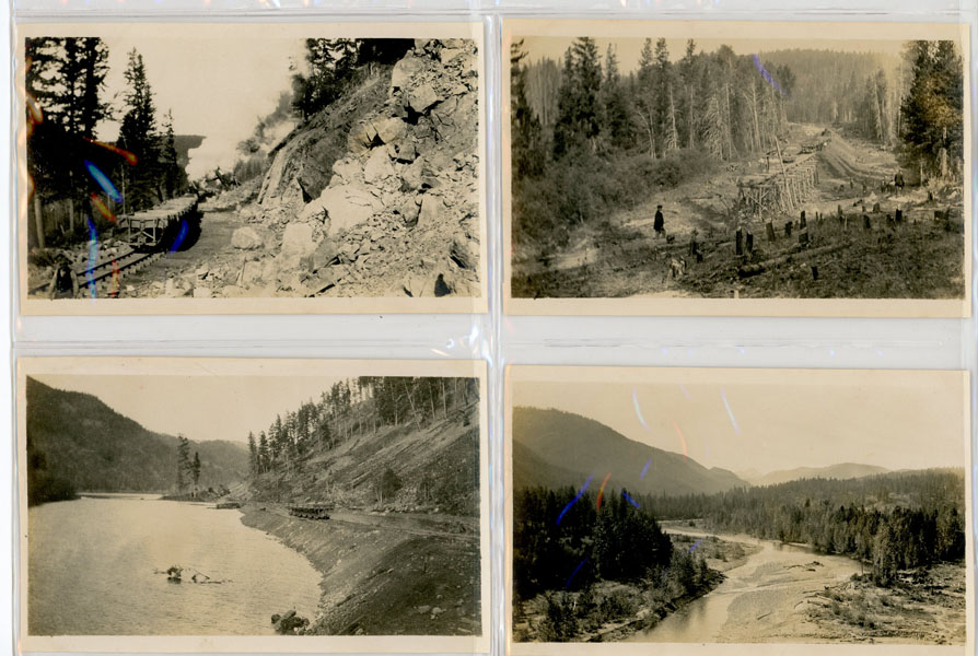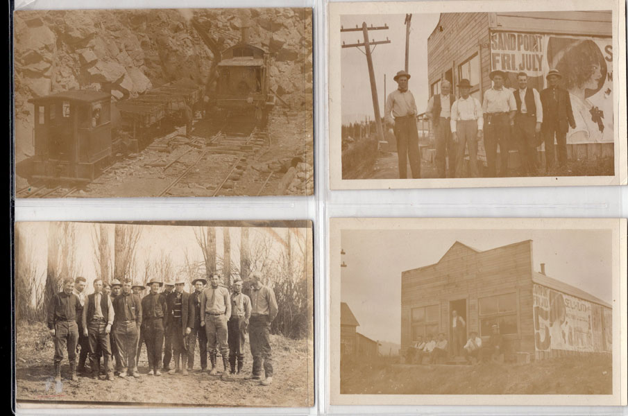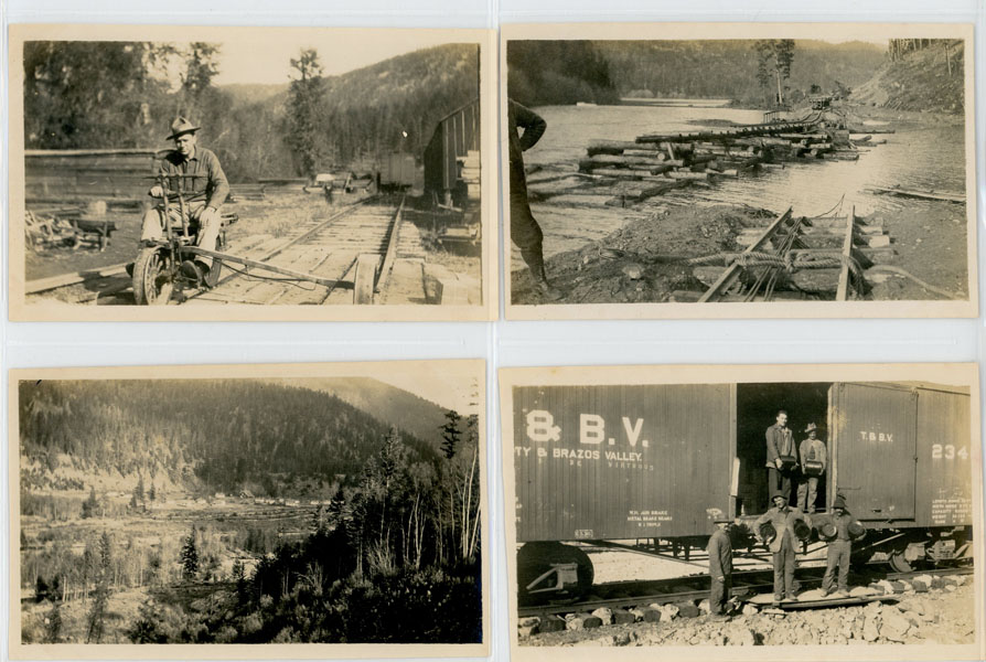 First edition. Black cloth three-ring notebook with titles stamped in gold gilt on the front cover. An exceptional archive of 97 photographs, Real Photograph Postcards, and Cyanotypes documenting the construction of the P & IN Ry along the Weiser River from Milepost 76 north of Glendale, ID to New Meadows, ID, and then the scenic Payette Lake area. These images include locomotives, engineers, survey crews, sternwheelers, excursions on RR hand cars, massive steam shovels in operation, and more. Archive of 67 original photographs sized 3 1/2" x 5 1/2," 29 Real Photograph postcards (3 cyanotypes), sized 3 1/2" x 5 1/2," 1 color linen postcard, 9 with ink annotations, pencil annotations, and notes on versos. These uncommon photographs & cyanotypes offer an extraordinary view of the construction of the Pacific & Idaho Northern Railway, a successful shortline railroad which had purchased the rights and interests, including surveys, grades, and right-of-way of the Weiser, Idaho & Spokane Railway in 1899, later sold in 1914 to the Oregon Short Line Railroad. By 1909, the P&IN Ry was beginning the construction from Evergreen, Idaho to New Meadows, Idaho where the company was establishing the New Meadows Depot, which would allow the P&IN Ry to serve as a "farm-to-market" railroad. In addition, they were operating six Baldwin4-6-0steam locomotives (four of them new), Nos. 100-105. These excellent photographs show surveyors at work, engineering crews, steam locomotives, supplies being hauled in by sternwheelers and horse-drawn covered freight wagons, grading, and laying of railroad ties, temporary corduroy log railroad track beds over water, construction of dikes, railroad trestles, and more. Many of the photos show Edwardian-era "Western" women riding the railroad construction hand cars, hamming around with the survey and track building engineering crew, shooting rifles, and posing for the photographer. Notes on the back of several of the photographs and postcards provide invaluable identifying details to the participants, especially the civil engineers and survey crew contracted with the J. G. White & Co., Inc. out of New York. Those identified include the project's chief engineer was Stuart Macaulay French (1878-1961), civil engineer who directed railroad building and irrigation projects for J. G. White & Co. from 1909-1920, before leaving for Seattle, and Sedro Woolley as mining engineer; Karl L. Keyes (1880-1972) a local civil engineer based out of Weiser, ID who began his career with the Chicago, Milwaukee & St. Paul RR, and then contracted for the P&IN Ry project; Howard McClymonds Yost (1885-1966), civil engineer who specialized in concrete work, road building, and later with U.S. Army; Charles B. Shirley, Jr. (1890-1963), a Weiser, ID surveyor, who later became a banker; Harry Spooner (b. 1875), accountant with the Oregon Short Line RR, and the P&IN Ry in Weiser, as well as the survey Levelman A.W. Bainbridge (fl. 1900-1920), surveyor and engineer out of Colorado Springs, and later Los Angeles, CA. Holland (b. 1892) was a young Vermonter whose family worked as engineers and surveyors with the Central Vermont Railroad, who went West to Idaho where he worked on the track building project for the P&IN Ry, later with the Lehigh Valley Railroad, and serves with the 13th Engineers Construction Battalion, and later 143rd Co. Transport Engineers with the A.E.F. during and after World War I. Two of the postcards included in this group were mailed to his older sister Joanna Florence Holland (1889-1925), a Vermont public school teacher. Most of the photos have strong contrast with a few sepia-tinted images with minor fading, overall a collection in near fine condition. See: Don Strack, Pacific & Idaho Northern Railway Overview, Utah Rails (2010); The Progress of Sub-Division in Idaho under the Carey Act, The Irrigation Age, Vol. XXIV, No. 1, pp. 55-56; Hiram Taylor French, History of Idaho: A Narrative Account of its Historical Progress (1914).