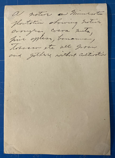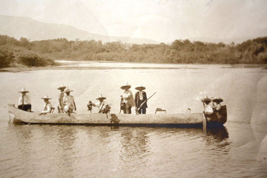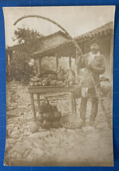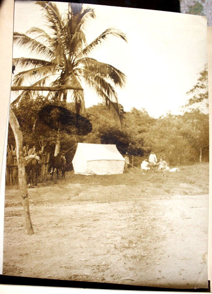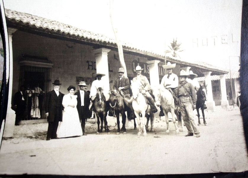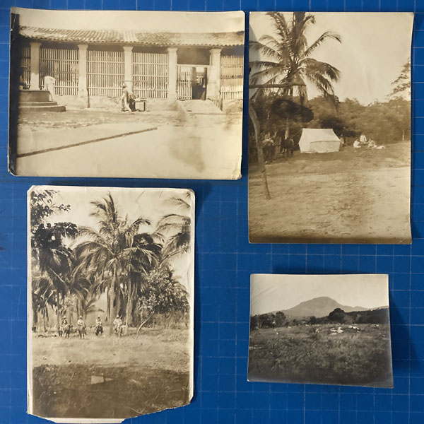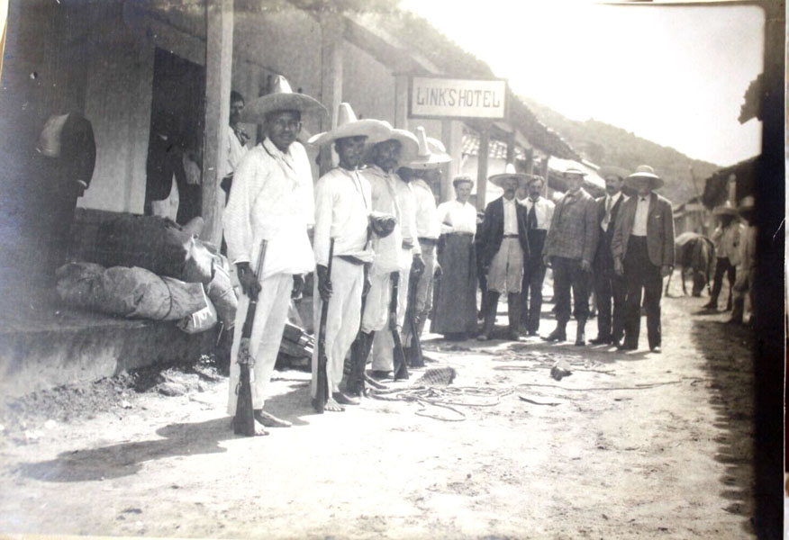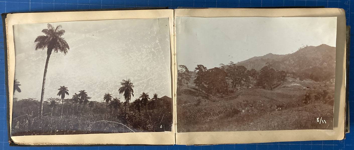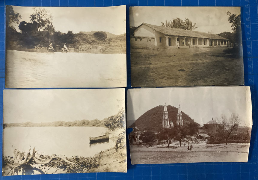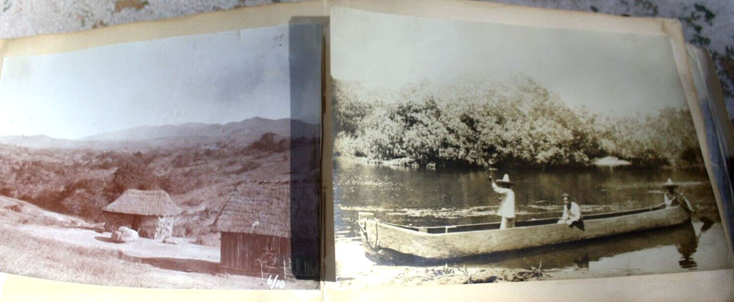 5" x 7" in black cloth with title (photographs) in gilt, housing 97 black and white photographs, sized approximately 4 1/2" x 6 1/2," and 7 black and white postcards, sized 3 1/2" x 5 1/2." All postcards are attached at top edges directly to pages. Several photographs are also attached at edges of prints in order that one can read what is written on the reverse side of the picture.... most times explaining the location, etc. of the photograph. Several photographs loose. All views are in and around Acapulco, Mexico and appear to have been taken in the early 1900s. Pictures include many locals and local scenes, working plantations, hollowed mahogany canoes, para grass fields, shipyard, offices of the Pacific Mail Steamship Company in Acapulco, scenery, ships in Acapulco harbor, many photos dealing with La Providencia, boat built of logs with machete, the Custom House in Acapulco, pictures of the home of “Presidente del Municipalidad,” Americans and Mexicans in front of Hotel Iguala, market scenes, cattle car of the Choctaw, Oklahoma and Gulf railroad, chapel on La Providencia erected for the use of Prest. Alvarez, his family and friends; pictures of locals on horseback, homes, etc. Several photographs indicate that they were taken on Minnirsota(?) Plantation. Mention of a Mr. Del Toro and a Mr. Roach is mentioned on several of the photographs. Rear side of one photo states, “An old cotton manufacturing and — house, Acapulco. Obviously, the proprietors having made their fortunes and returned to Spain.” Another reads, “A native on Minnisota (?) Plantation showing exotic oranges, apples, bananas, tobacco, etc. all grown and gathered without cultivation.” According to the Fruit Trade Journal and Produce Record, February 16, 1907: “Invests $5,000,000 in Fruit Lands. - Mexico City, Feb 12. A party of capitalists from the western coast of the United States, headed by Mr. Arturo del Toro, of Chapala, Mexico, arrived yesterday from Acapulco, where they came by steamer from San Francisco. In the party, besides Mr. Del Toro, are” Moritz Thomsen, of Seattle, Wash., wealthy exporter; J.D. Trenholme, president of the Northwestern Steamship company; E.T. Barnette, Portland, Ore., multi-millionaire; G.L. Campbell, a large grain exporter of Portland; T.F. Ryan, whosesale fruit man of Seattle; Oscar Brown, also in the wholesale fruit business in Vancouver, B.C. and F.C. Stephens, who is extensively interested in Mexican property. This party has just closed a deal for two hundred thousand acres of land twenty miles from Acapulco, and will commence at once to put it in cultivation. A company has been formed with a capital of $5,000,000 gold to raise and ship tropical fruits from this property. Four years ago that country was comparatively unknown except for mining purposes, but since a trip of investigation made at that time by Mr. Del Toro, under the auspices of the government, several million acres of land have passed into the hands of investors, who will pit it into cultivation.” I believe that this album chronicles life in Acapulco of one of the individuals involved in this venture. Photographs generally clear and bright though several have chips, edges missing and creases. Still a great collection of photographs.