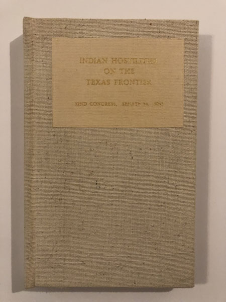 First Edition. Disbound. 135pp. Senate. 32nd Congress, 2nd Session. Ex. Doc. No. 14. This lengthy document spans the time period of 1835-1845. While some of the correspondence pertains to raids into Mexico by tribes coming from Texas or the United States, much of it addresses the problems of cross-border violence between citizens of Texas and Indians from the United States during this period of Texas independence. An important record. Some very light scattered foxing, else very good.