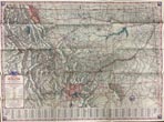 First edition. 20 1/2" x 28" sheet, folded to 30 panels. 15 panels offer a map of the Montana State Highway System, printed in blue, red and gray ink and showing paved, improved, graded roads and roads under construction. Opposite 15 panels offer a two cover panels, printed in yellow and black and showing a young woman on a running horse with cowboys, Indians, and a covered wagon behind and with 5 cars on a highway shown below the illustration. 13" x 10" map of Waterton-Glacier Peace Park and a 13" x 10" map of Yellowstone National Park, both printed in yellow and black and showing main, secondary and connecting roads, interstates and trails. Opposite panels also offer a mileage table and brief messages from the state governor and state highway department. Minor soiling and folds as issued. Very good.