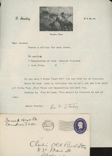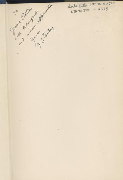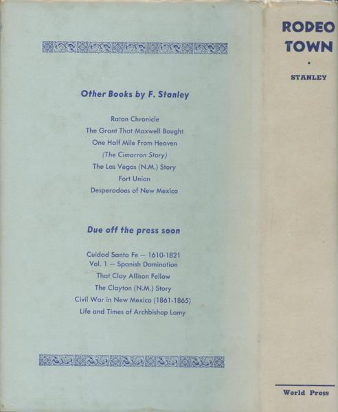 First edition. 8vo. Inscribed on the front free fly leaf "To Jerome Peltier with best regards and sincere appreciation. Yours, F. Stanley." Signed copies by F. Stanley are common, but inscribed copies are very uncommon. Blue cloth, titles stamped in silver on front cover and spine, xii, 418 pp., foreword, illustrated from photographs, portraits, bibliography. One of 500 numbered copies of which this is no. 378. Laid-in to this copy is a typed letter and stamped envelope on Father Stanley's stationery and signed by him with envelope post marked Oct. 13, 1954. Fine, bright copy in lightly soiled dust jacket lightly faded on the spine.