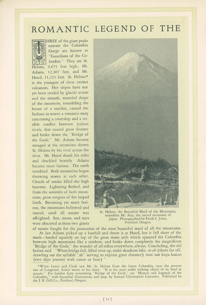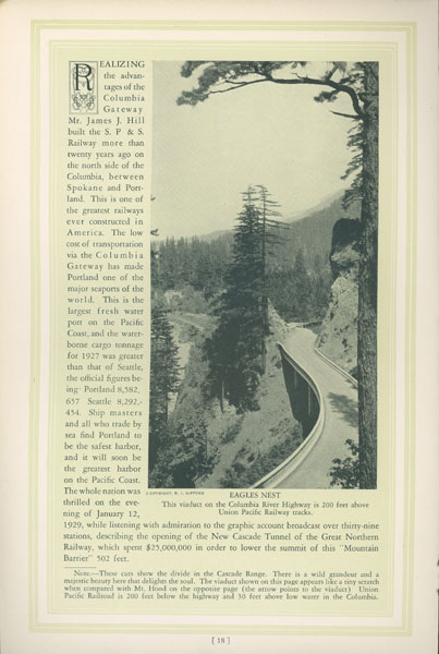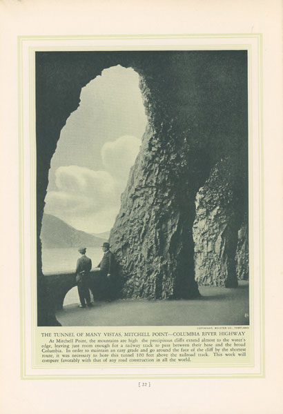 First edition. 10 1/4" x 7" in green-colored softcovers, elaborately decorated in gilt with title in blue lettering and with dust jacket showing photograph of the Columbia Gorge on front cover and of Astoria Column on rear cover. [2]32pp. Green-tinted pages throughout. Illustrations. Presentation inscription from author on title page. A wonderfully illustrated history and travel guide to the Columbia River Gorge, by the noted author and engineer of the historic Columbia River Highway. Center page loose from staples and with light wear to the edges in lightly soiled with wear to corners and head and toe of spine. Very good.