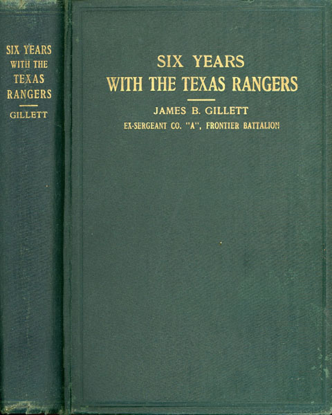 First edition. Cloth, 332 pp., illustrations. A classic narrative, Gillett spent many years fighting Indians and outlaws in Texas and gives a colorful account of his experiences. Gillett joined Company D of the Texas Rangers at the age of seventeen and for the next six years he would be combating horse thieves and murderers, fighting in the Mason County War, capturing vigilantes and providing law and order for the towns. He was frequently called to combat dangerous Native Americans, particularly the Apaches, who were raiding, threatening or stealing from Texan inhabitants. Gillett served under Captain Dan W. Roberts and later Captain N.O. Reynolds in Kimble, Mason, Menard, Kerr, San Saba, Llano, Lampasas, Burnet, and El Paso counties. Gillett resigned in 1881, becoming City Marshall of El Paso and serving through 1885. Gillett turned to ranching, a life he lived until his death in 1937. "I regard Gillett as the strongest and straightest of all ranger narrators. He combined in his nature wild restlessness and loyal gentleness. He wrote in sunlight."---J. Frank Dobie. "The best of ranger autobiographies"---Stanley Vestal. "Perhaps the best account of the rangers ever published."---Peter Decker. "This is one of the finest personal memoirs of Texas Ranger service."---John H. Jenkins. A very good, clean, bright and tight copy.