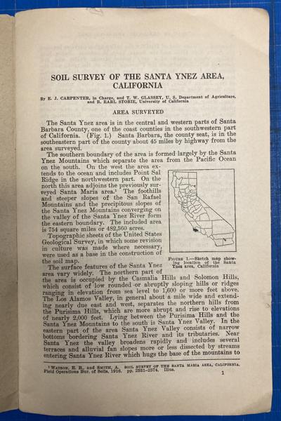First edition. 48 pp. Survey is complete with one large folding map in color that details the area. Also provides information on climate, agriculture, soils and crops, etc. Insect damage to last two pages, but not affecting the text, and small chip at top edge of front cover, else near fine in printed wrappers.