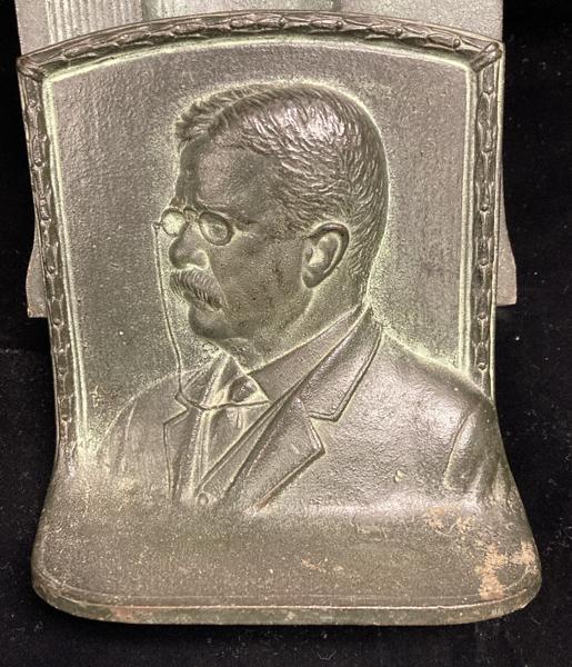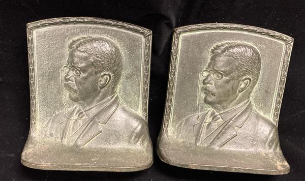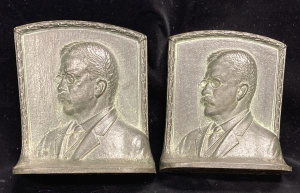 This pair of attractive, well-made with a rich patina book ends, measure 4 3/4" x 5 3/8" x 2 1/4" and weight five pounds two ounces. Beautifully designed and sure to provide many years of attractive service. This pair of book ends is stamped on the underside Greenblatt Studios 0115.