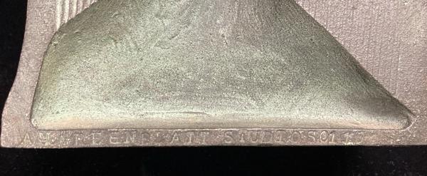 Greenblatt Studios was a company in Boston, Massachusetts, that produced decorative cast iron and bronze items, such as doorstops and bookends, in the early to mid-20th century. Many of these vintage pieces, which often feature Americana folk art or historical designs, are now popular collectibles