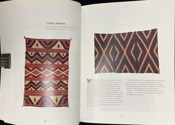 First edition. 4to. Perfect bound, pictorial stiff wrappers, [4], 74 pp., acknowledgements, introduction, illustrated from photographs and color examples of woven blankets and rugs, bibliography. A wonderful catalog that promotes one of three traveling exhibitions in a series that has been organized by the San Diego Museum of Man and sponsored by the Lila Wallace Reader's Digest Fund, Numerous examples in color from the Pueblo, Navajo, and New Mexican Hispanic village cultures are presented throughout the book. The bibliography offers much valuable information. Fine bright and unread copy.