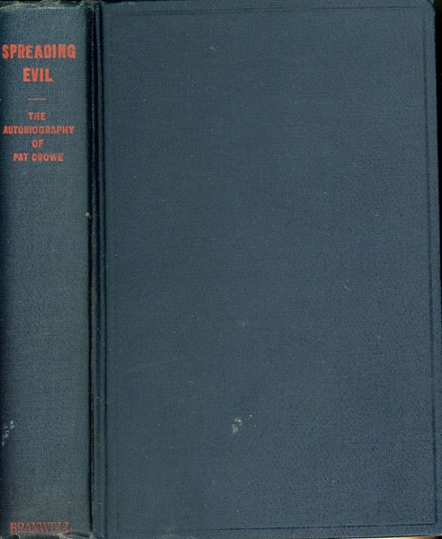 First edition. 8vo. Dark blue cloth, titles stamped in red on the spine, xvi, 331 [1] pp., biographical note, editor's note, appendix. Crowe terrorized the Colorado, Nebraska, and Missouri areas for a number of years. Six Guns 520 says "Scarce." An all around hell-raiser whose specialties were diamond robbery, train robbery, and bank robbery carried out for a number of years. He also was one of two men who in 1900, kidnapped the Cudahy Meat Packing Company's owner's son and ransomed him for $25,000.00. A bit of wear to the spine ends, else a very good copy.