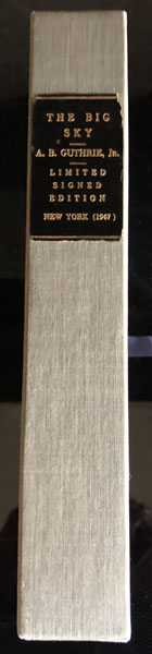 First edition. 8vo. Cloth. 386pp. Author's second book. One of 500 numbered copies with an extra leaf signed by Guthrie tipped-in. This copy includes both the regular trade, pictorial dust jacket, and the special plain grey advance dust jacket which bears the limitation number at the top of the front panel. This is copy number 199. A Jeff Dykes Western High Spot and a 1948 Pulitzer Prize nominee. The 1952 film adaptation directed by Howard Hawks received two Academy Award nominations. Introduces Dick Summers and Boone Caudill. Under Summers' tutelage, Caudill becomes a powerful White Savage ... a man that only the beautiful daughter of a Blackfoot chief would dare to love. A. B. Guthrie gives us an unforgettable portrait of a spacious land and a unique way of life. Book and both dust jackets in fine condition, and protected in custom slipcase with title and limitation information in gilt on leather label on spine. Advance Review Slip laid-in. An exceptional copy!