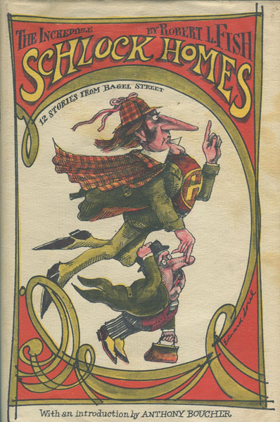 First edition. Fine bright copy in dust jacket. With an Introduction by Anthony Boucher. Twelve stories from Bagel Street. Twelve stories from Bagel Street. Follow Schlock Homes and Dr. Watney through the yellow fog of London as they track down Professor Marty. Watch as Homes battles the other nemesis of Scotland Yard .. Colonel Moron. According to Anthony Boucher, "there is nothing quite comparable to Robert L. Fish's tales of Schlock Homes. Not merely are they unpardonably and outrageously funny; they are small masterpieces of adroit and devious plotting." QUEEN'S QUORUM 122.