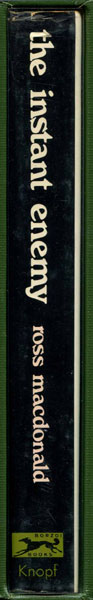 First edition. Fine in dust jacket with a hint of wear to the head of spine. Laid-in to this copy is an invoice from Random House, Inc (who owned Alfred A. Knopf) addressed to Kenneth Millar, (Ross Macdonald) selling him 6 copies of THE INSTANT ENEMY at discount. Lew Archer is hired by Keith Sebastian, a Los Angeles business executive, to find his daughter Sandy, a high school senior who has disappeared with a homeless boy. Sebastian and his wife are living on the edge of affluent bankruptcy and seem unable to communicate with their daughter. Before Archer finds Sandy, she has participated in a violent crime. His efforts to save her from the consequences of her actions involve him in a savage plot twisting deep into the past. Attractive copy housed in a cloth slipcase.